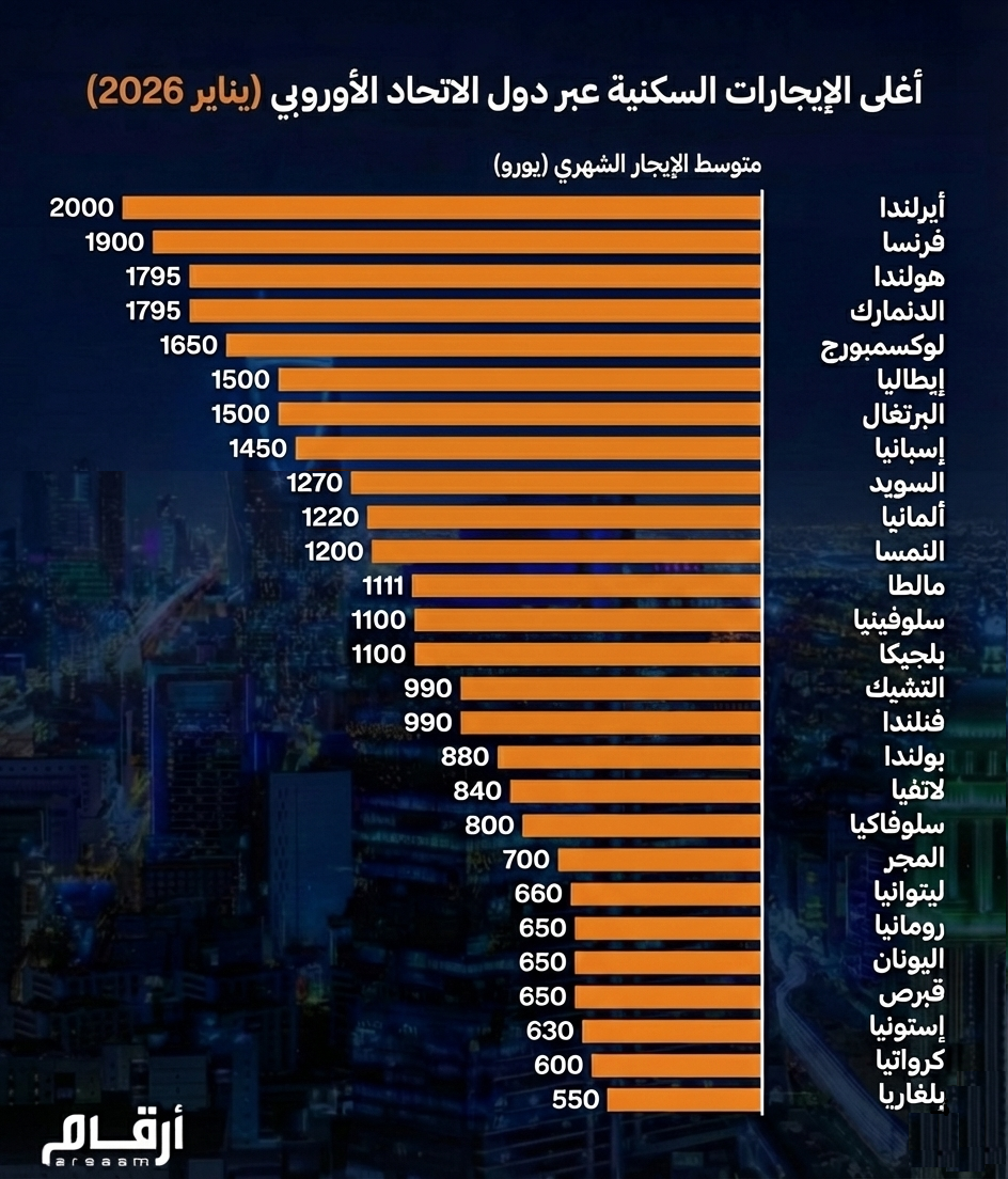 المصادر: أرقام – يوروستات - جلوبال بروبرتي جايد
