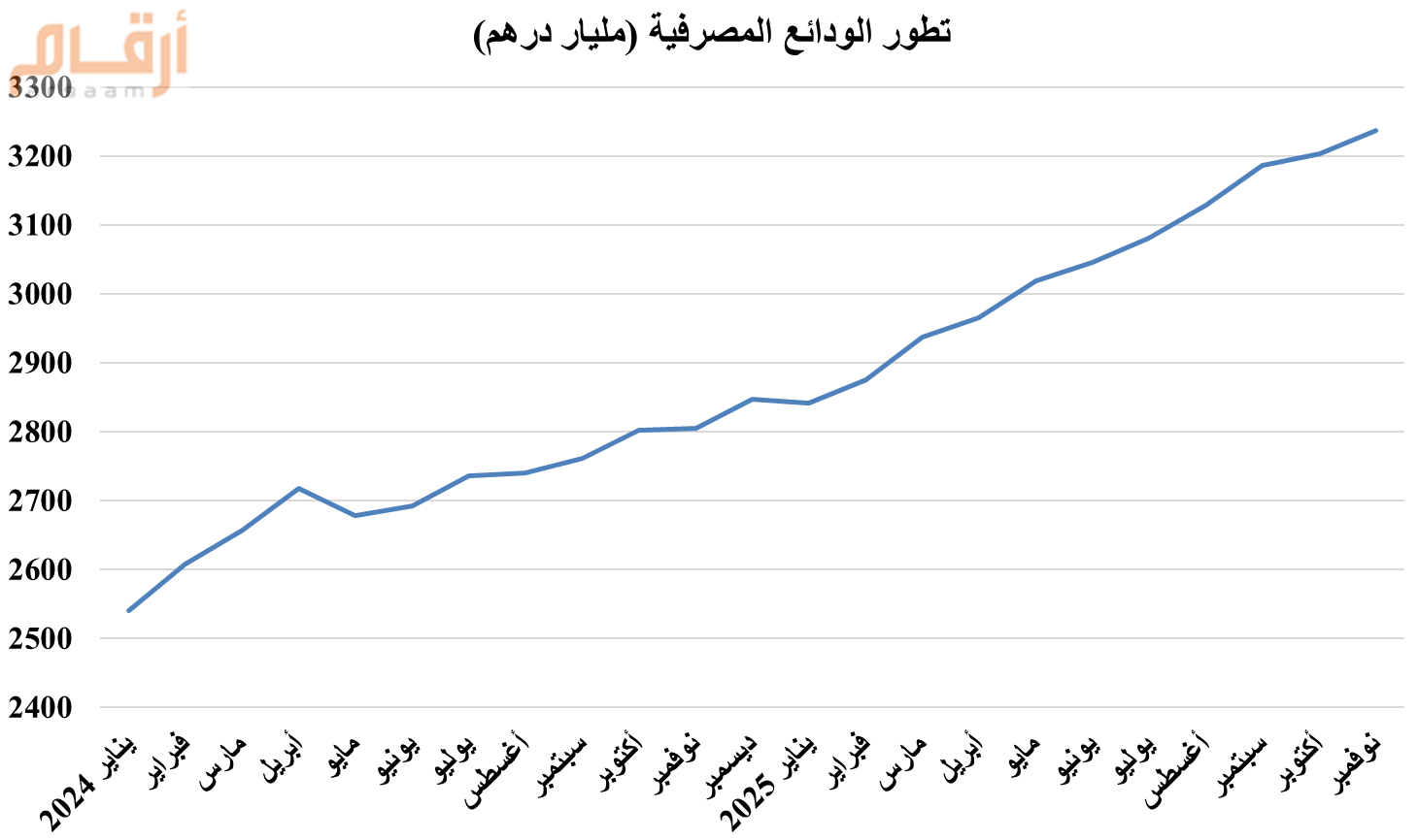 ووفقًا لأحدث إحصاءات مصرف الإمارات المركزي، ارتفعت الودائع المصرفية إلى 3236.6 مليار درهم بنهاية نوفمبر 2025، وبنسبة 15% مقارنة بنفس الفترة من عام 2024، وارتفعت بقيمة 33 مليار درهم مقارنة بشهر أكتوبر الماضي.