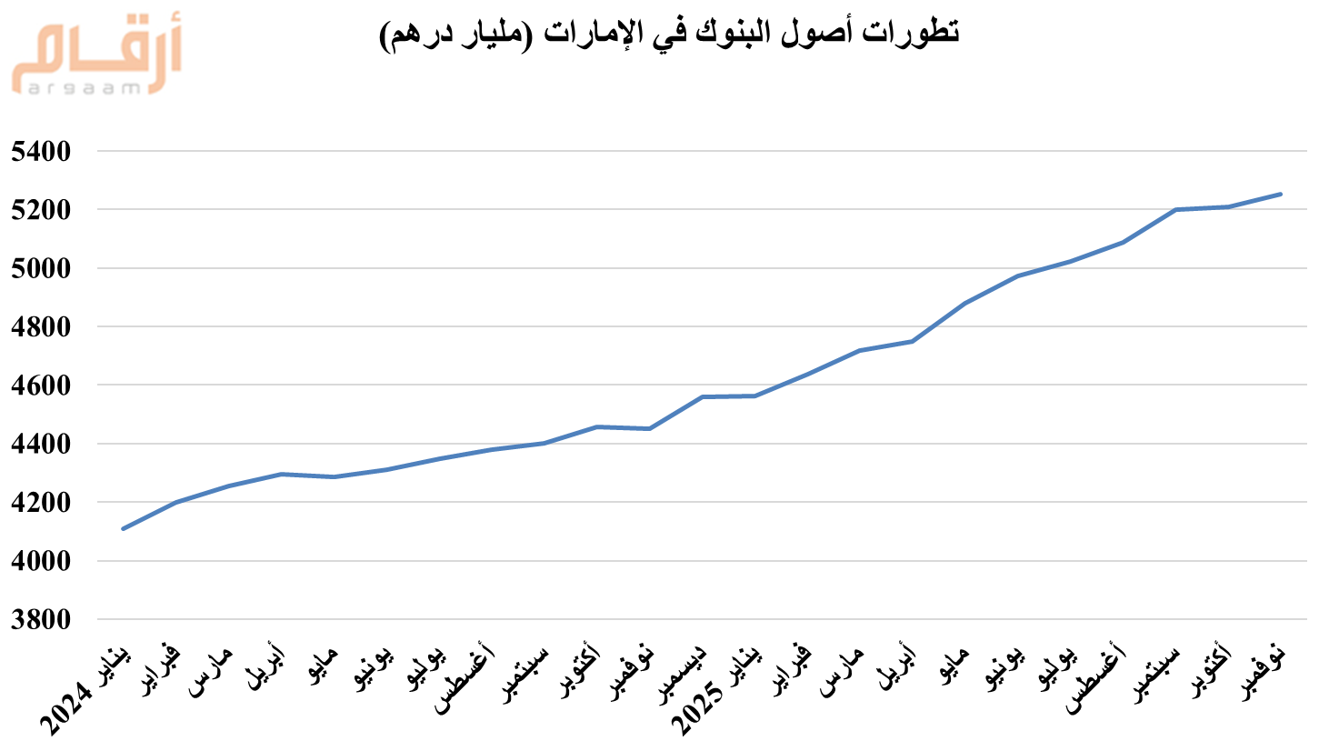 أصول البنوك في الإمارات ترتفع إلى 5251.9 مليار درهم (+18%) بنهاية نوفمبر 2025