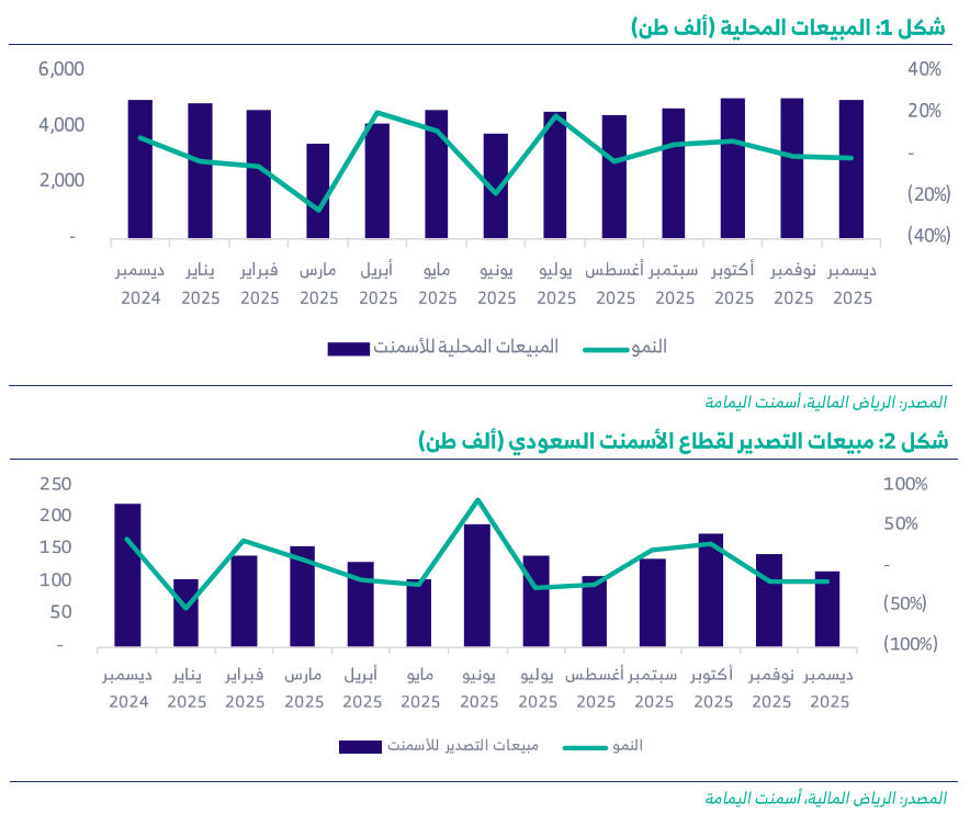 الرياض المالية: التقرير الشهري لقطاع الإسمنت السعودي - ديسمبر 2025