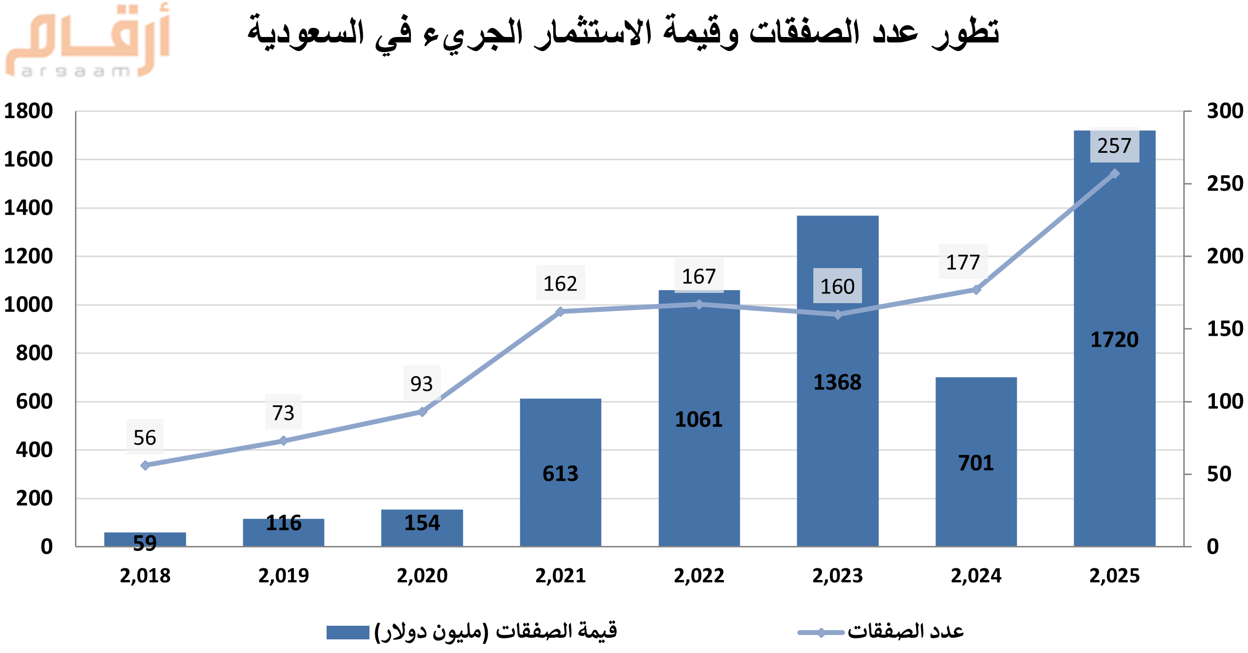 وحافظ قطاع التقنية المالية على صدارة القطاعات في الاستثمار الجريء خلال العام 2025 بإجمالي تمويل وصل إلى 3.5 مليار دولار، تلاه قطاع التجارة الإلكترونية والتجزئة بقيمة تجاوزت مليار دولار بدعم من صفقات كبرى مثل صفقة نينجا السعودية بقيمة 254 مليون دولار.