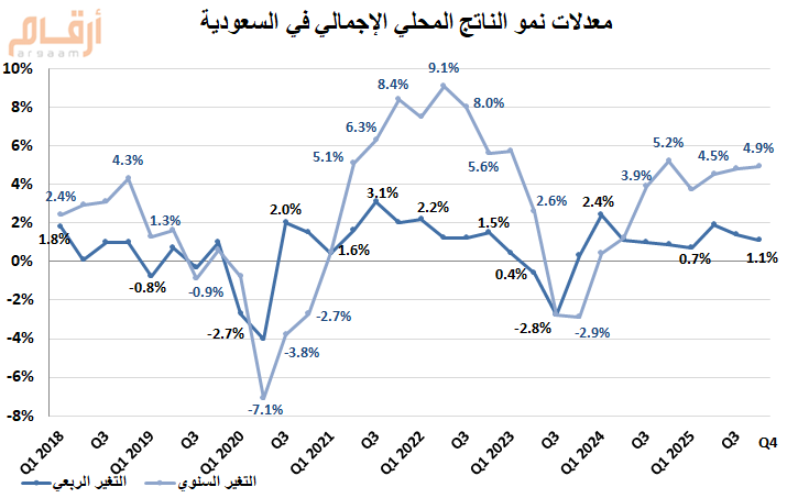 معدلات نمو الناتج المحلي الإجمالي خلال الربع الرابع 2025 |