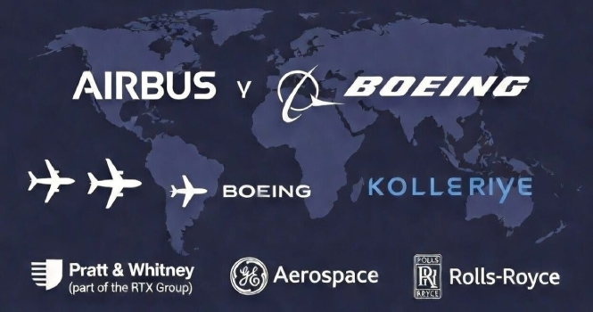 كما تهيمن شركات مثل برات آند ويتني (تابعة لمجموعة آر تي إكس)، وجي إي إيروسبيس، ورولز رويس على سوق محركات الطائرات التجارية وقطعها، وعندما تواجه هذه الشركات مشكلات إنتاج أو جودة، تمتد التداعيات إلى كامل القطاع.