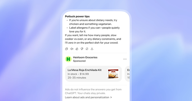 وسيعتمد اختيار الإعلان على مطابقة موضوع المحادثة الحالية والاهتمامات العامة دون كشف الهوية الشخصية، حيث يتلقى المعلنون فقط بيانات إجمالية عن أداء إعلاناتهم (مثل عدد النقرات) دون الوصول إلى سجل الدردشة أو "ذاكرة" حساب المستخدم.