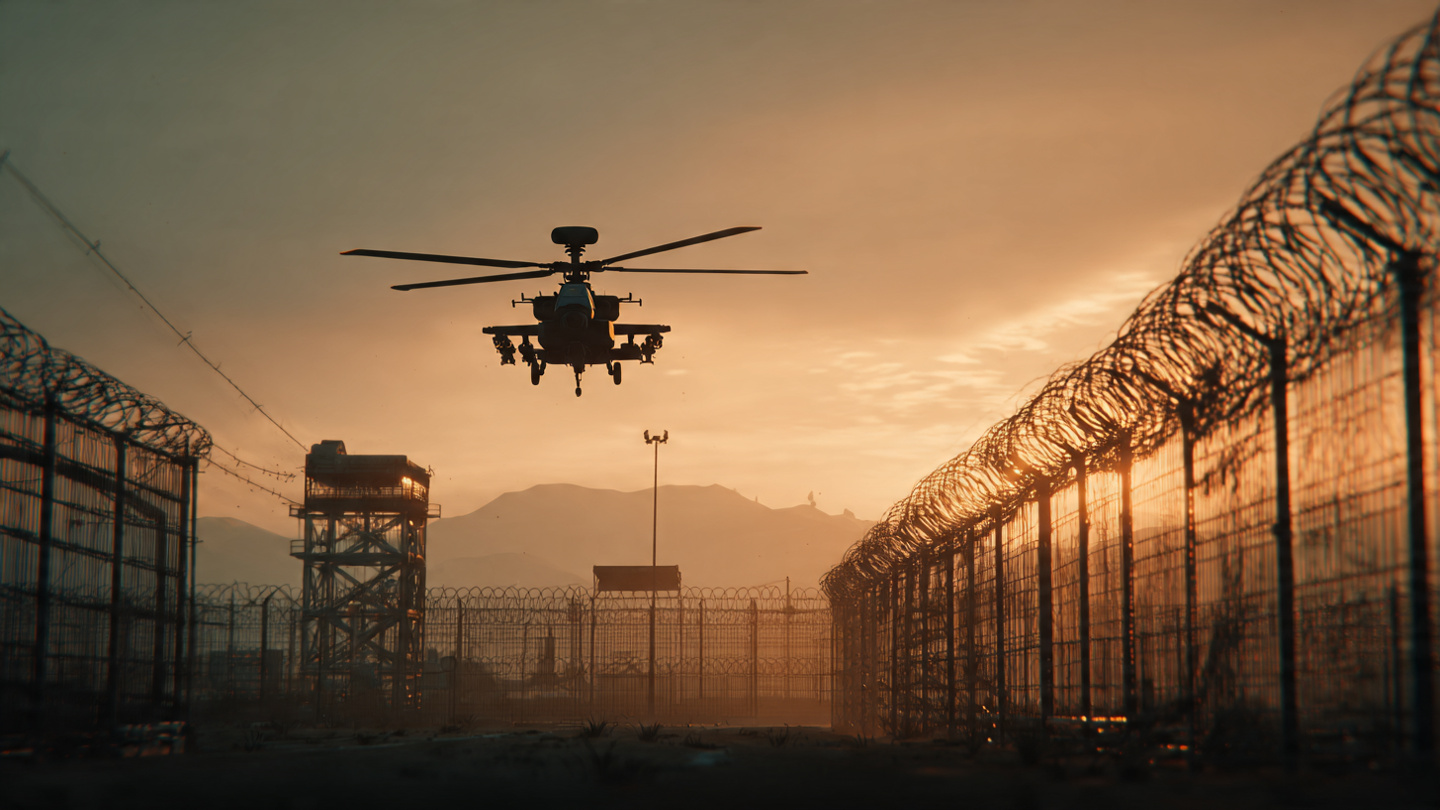 دروع الحماية: تشير تقارير إلى وجود حقول ألغام وأسلاك شائكة مكهربة تحيط بالمنشأة، وتتكامل هذه الدفاعات المادية مع وجود مروحيات أباتشي قتالية تقوم بتمشيط المنطقة المحيطة لضمان التفوق الجوي والردع الفوري.