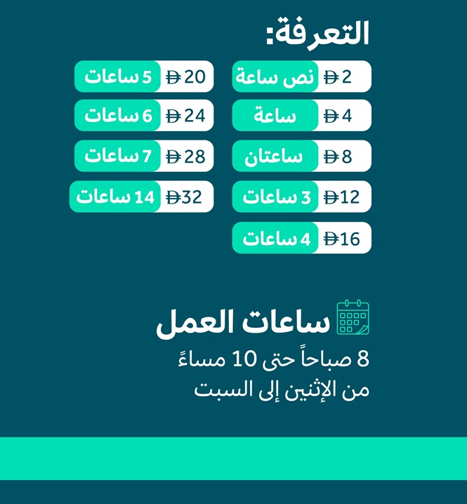 أما بالنسبة للمدد الأطول، فتبلغ التعرفة 20 درهماً لخمس ساعات، و24 درهماً لـ 6 ساعات، و28 درهماً لـ 7 ساعات، وتصل إلى 32 درهماً لمدة 14 ساعة.