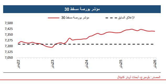 حافظ مؤشر بورصة مسقط على مكاسبه الأسبوعية للأسبوع الخامس على التوالي، مرتفعًا بنسبة 2.33% ليغلق عند 7,393.372 نقطة، وهو أعلى مستوى للمؤشر منذ 2 أكتوبر 2014.