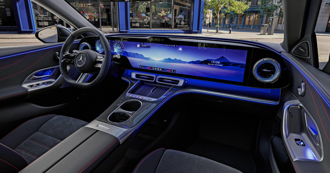 وتبرز التكنولوجيا الفائقة في مقصورة "Welcome home" التي تضم شاشة "MBUX Hyperscreen" العملاقة بمقاس 39.1 بوصة، بالإضافة إلى المساعد الافتراضي الذي يدمج تقنيات "شات جي بي تي" و"جوجل جيميناي" لتقديم تجربة تفاعلية غير مسبوقة.