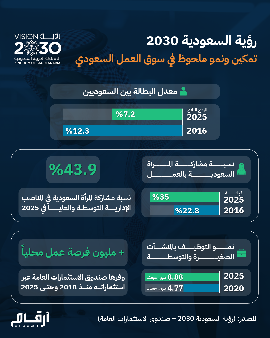 بالإنفوجرافيك.. رؤية السعودية 2030.. تمكين ونمو ملحوظ في سوق العمل السعودي