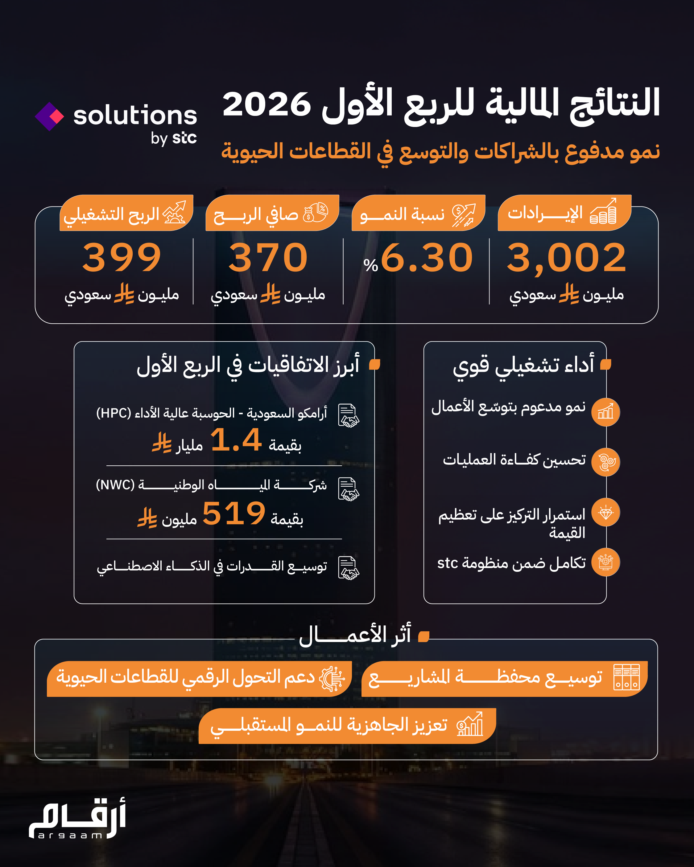 solutions by stc تحقق أداءً ماليًا قويًا في الربع الأول من عام 2026 متجاوزة توقعات السوق بإيرادات تتخطى 3 مليارات ريال