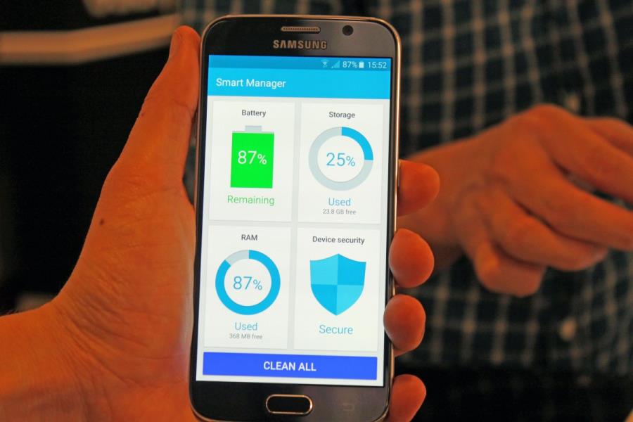 7-ويأتي جيل جالكسي إس الجديد بتطبيق Smart Manager لفحص محتواه الداخلي بمجرد ضغطة زر، وهي ميزة توفرها بعض تطبيقات آيفون 6 الخارجية.