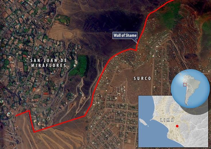 بني الجدار في عاصمة "بيرو" "ليما" من الأسمنت ومثبت أعلاه أسلاك شائكة للفصل بين الأثرياء والفقراء وأطلق عليه اسم "حائط برلين" في بيرو"، واعتبرته حملات حقوقية رمزاً للعار، وتم نشر صور عنه عبر الإنترنت تعبيراً عن الغضب إزاء التمييز الطبقي في المجتمع، ويبلغ ارتفاعه حوالي 3 أمتار.