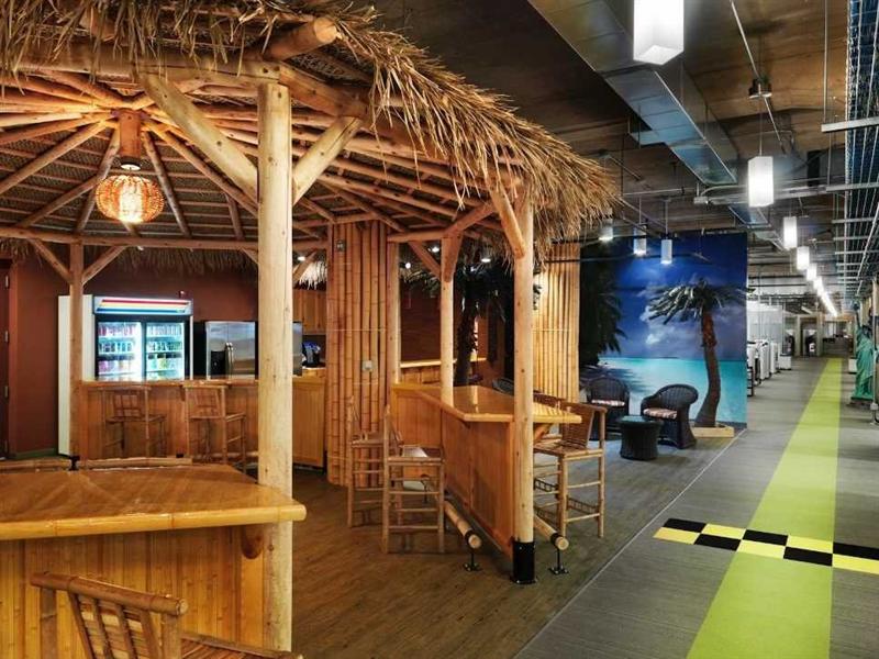تشجع شركة "أوراكل" الرائدة بقطاع التكنولوجيا موظفيها على اتباع أسلوب حياة صحي، لذلك أضافت ملاعب لكرة السلة والكرة الطائرة إلى جانب مسبح نموذجي ضخم.