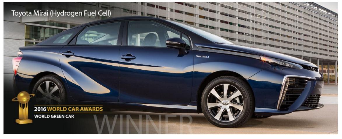 - استطاعت الفوز على منافساتها التي تقدمت للفوز بالجائزة وهي "شيفروليه فولت"، حيث تعمل "ميراي" بالطاقة الهيدروجينية، ويُعتقد أنها ستؤثر على استراتيجيات المنافسين في صناعة السيارات الكهربائية.