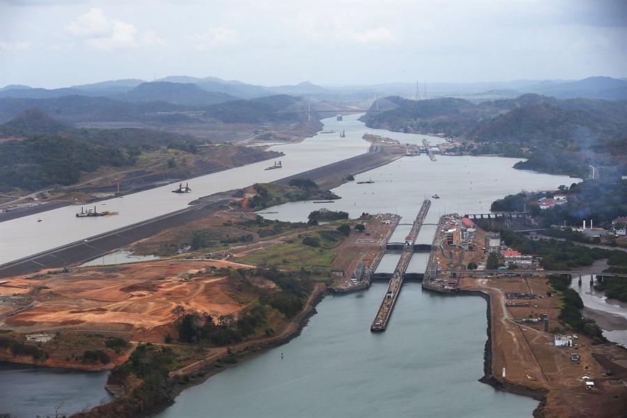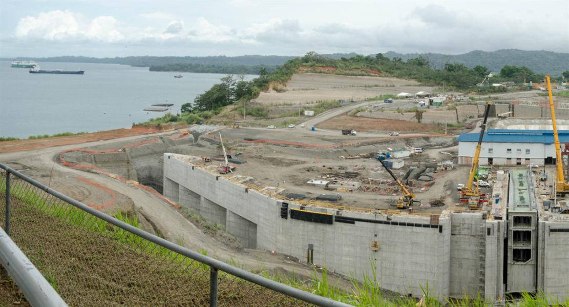جزء من مشروع أحدث التوسعات لقناة بنما من ناحية بوابة "ميرافلورز".