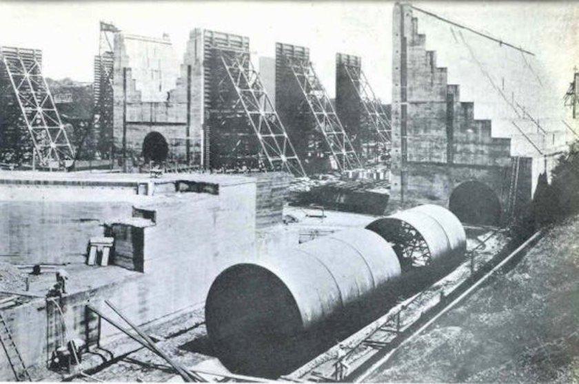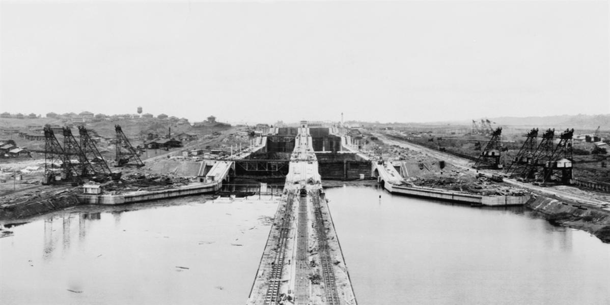 بوابات قناة بنما أثناء الإنشاء عام 1910، ويبلغ ارتفاع الواحد منها 23.5 متراً والعرض 11 متراً.
