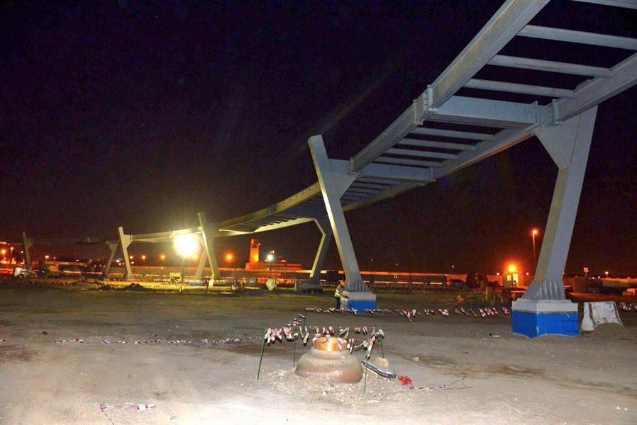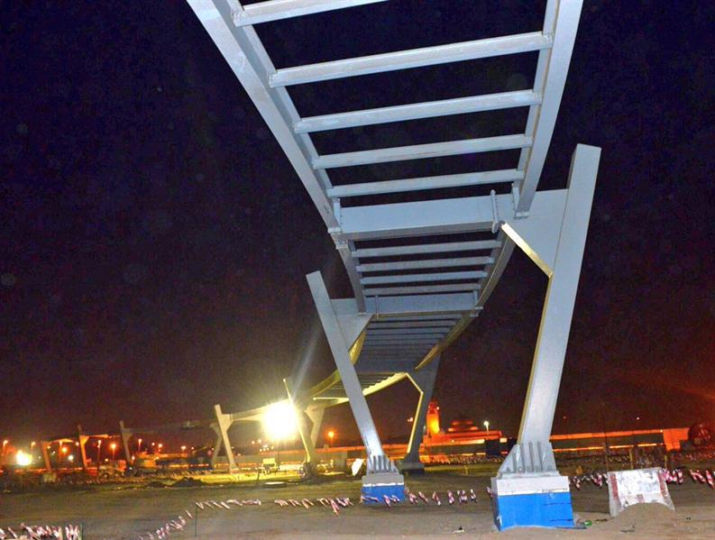 بالصور.. أعمال إنشاء أطول جسر مشاة بالسعودية