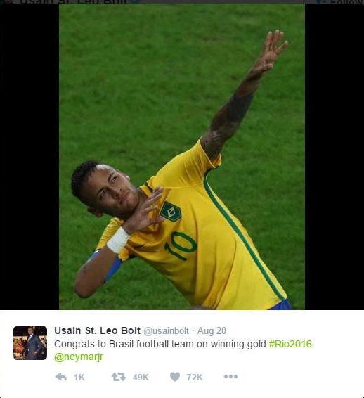 تصدرت دورة الألعاب الأولمبية لعام 2016 التي استضافتها ريو قائمة "تويتر" العالمية، وحصل الفريق الأمريكي على معظم الميداليات الذهبية في الأولمبياد، ولكن من أشهر التغريدات كانت للاعب كرة القدم "نيمار" وهو يحتفل على طريقة العداء الجاميكي الشهير "يوسين بولت".
