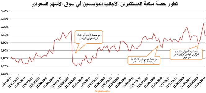 وفيما يلي رسم يوضح تطور ملكيات الأجانب المؤسسين منذ بداية 2017: