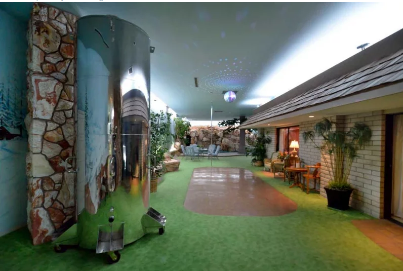 وتقدر مساحة القصر بحوالي 4500 متر مربع، وصُمم بشكل يبدو كالحصن الآمن للأثرياء بعيداً عن العالم الخارجي، كما أنه يبدو أيضاً كمنزل من حقبة السبعينيات من القرن الماضي، ولا يوجد أي مصدر لضوء الشمس.