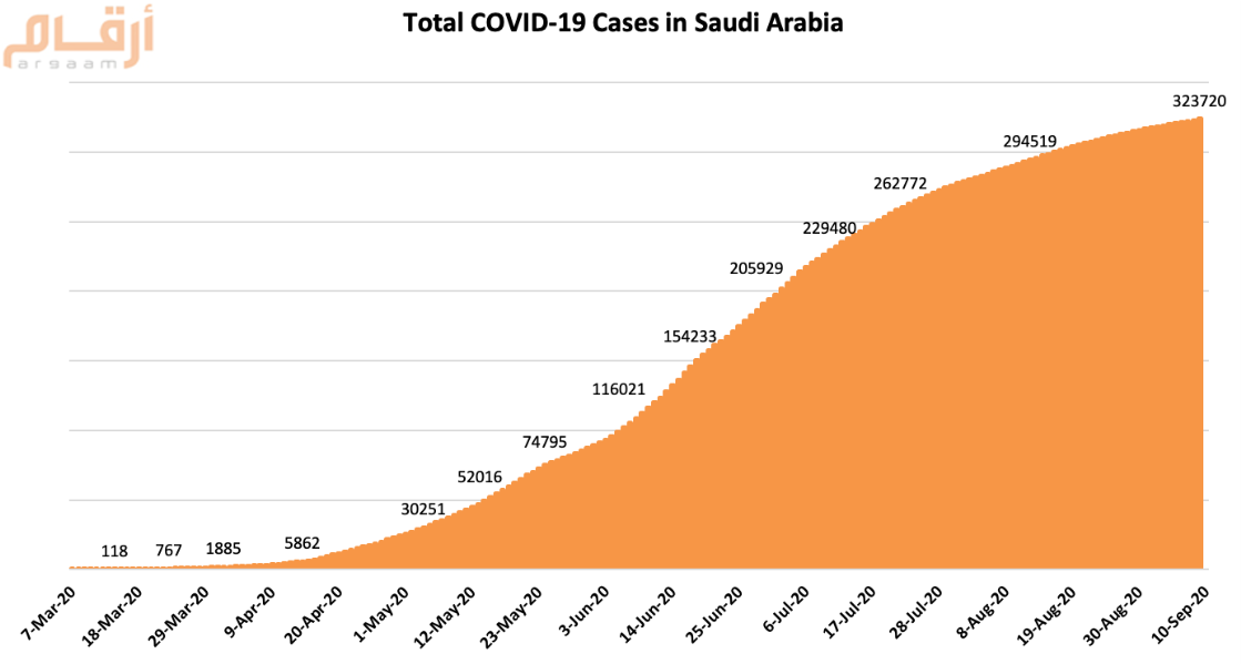 Saudi Arabia recorded 708 new COVID-19 cases today, Sept. 10 bringing the total number of confirmed cases to 323,720, the Ministry of Health said.