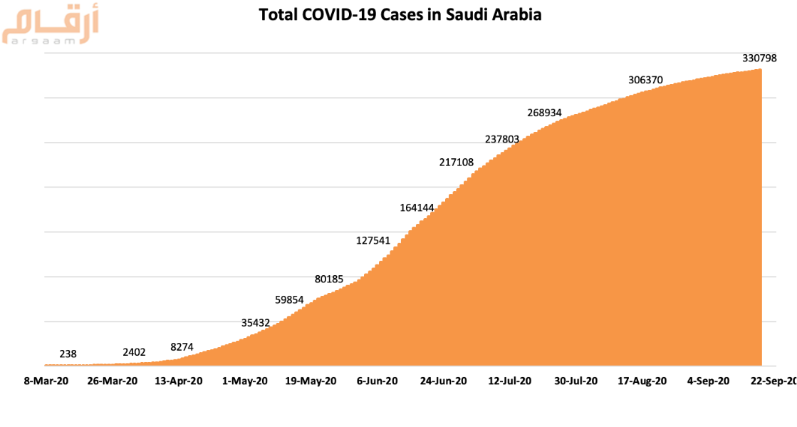 Saudi Arabia recorded 552 new COVID-19 cases today, Sept. 22, bringing the total number of confirmed cases to 330,798, the Ministry of Health said.