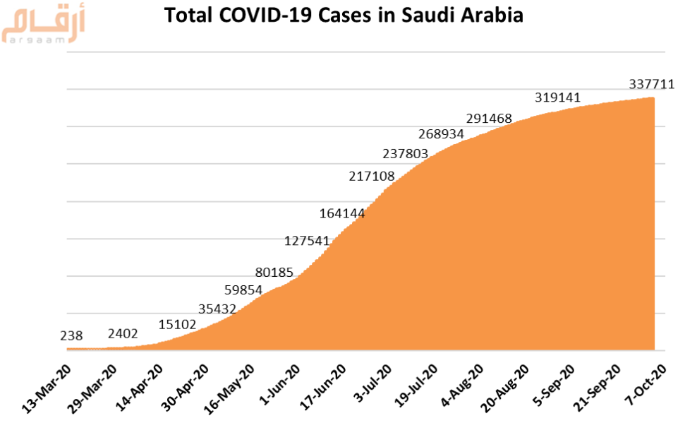 Saudi Arabia recorded new 468 COVID-19 cases today, Oct. 7, bringing the total number of confirmed cases to 33,771, the Ministry of Health stated.