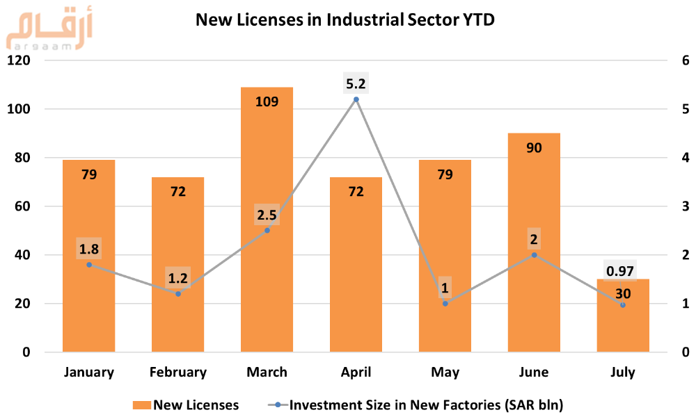 The Ministry of Industry and Mineral Resources licensed more 531 new factories in the first seven months of 2022 with total investments of SAR 14 billion.