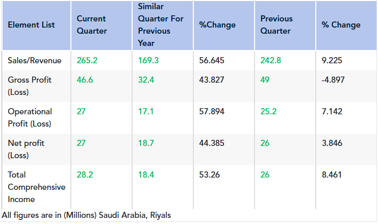 The Company recorded a net profit growth of 4.0% during the second quarter of 2025 compared to the previous quarter, with net profit reaching SAR 27.0 million in Q2 2025, up from SAR 26.0 million in Q1 2025. This increase is primarily attributable to the following factors: