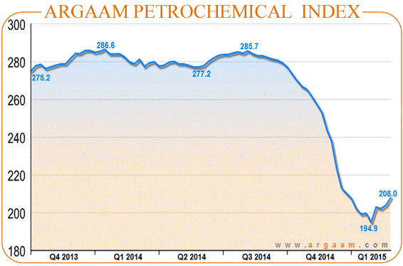 Argaam Petrochemical Index is the only index that provides weekly capacity-weighted measures for the average changes of international prices of several petrochemical products manufactured in the Gulf Arab countries.
