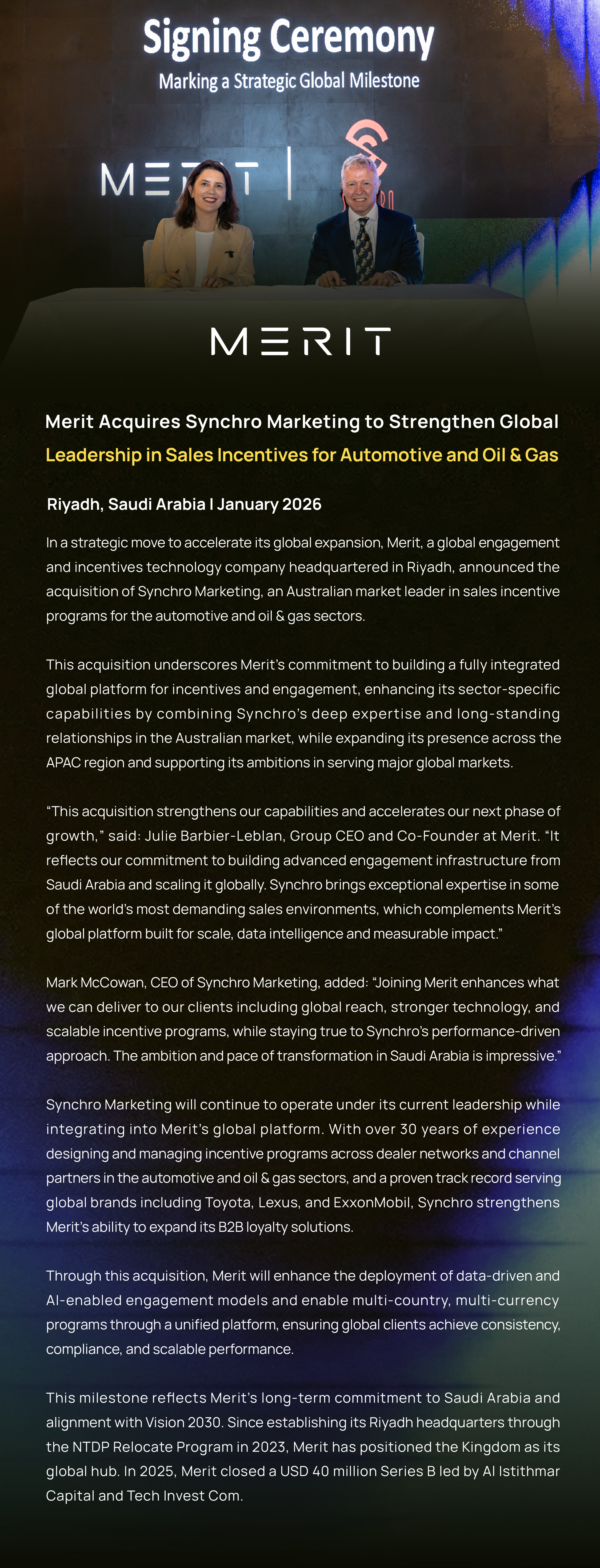 Merit Acquires Synchro Marketing to Strengthen Global Leadership in Sales Incentives for Automotive and Oil & Gas